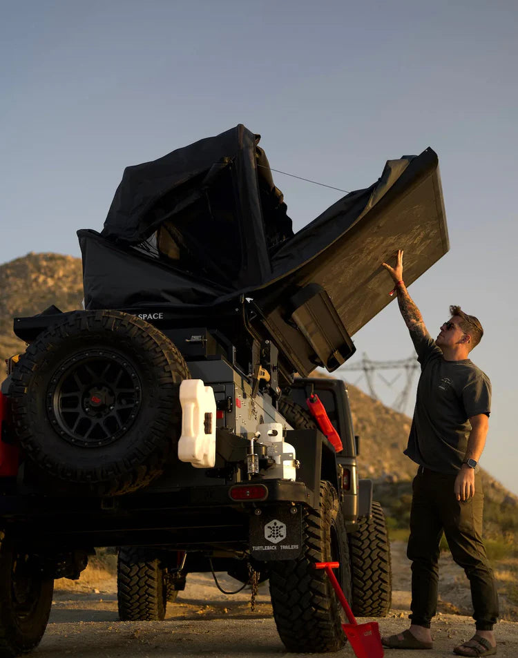 Toute la façade de nos tentes Roof Space s'ouvre, transformant votre tente de toit en une terrasse confortable. Immergez-vous dans votre environnement et savourez chaque instant.